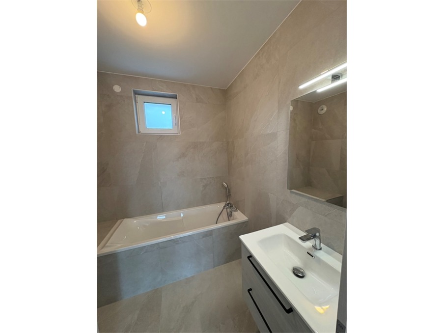 Très bel appartement F4 en attique de 97,51 m² comprenant une entrée, un spacieux séjour avec une cuisine équipée ouverte (four, plaque induction avec hotte intégrée, réfrigérateur/congélateur, micro-ondes, îlot central, lave-vaisselle, rangements), 3 chambres, une salle de bain avec baignoire et une salle d'eau avec douche et wc, un wc séparé avec lave-mains.