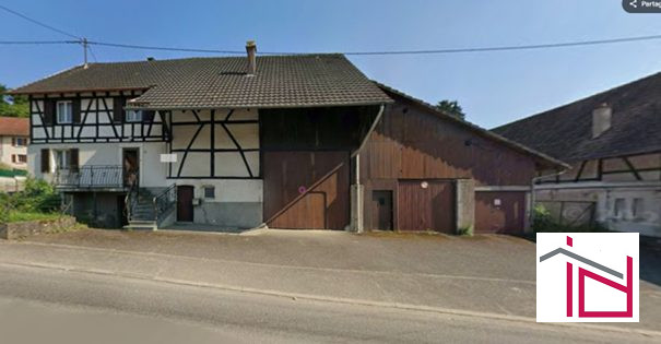 Le tout est implanté sur un terrain plat, en bordure de route, facilement accessible.La maison présente une architecture typiquement alsacienne avec colombages et toiture traditionnelle, dans un environnement calme et verdoyant à proximité d’Altkirch et des principaux axes routiers.