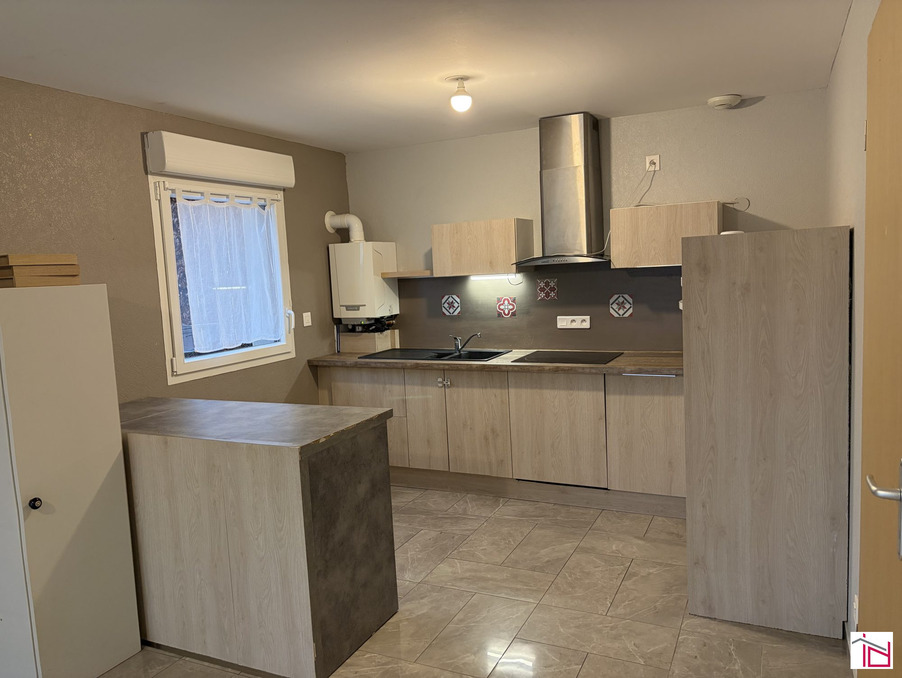Un vaste salon/séjour lumineux avec cuisine ouverte, équipée