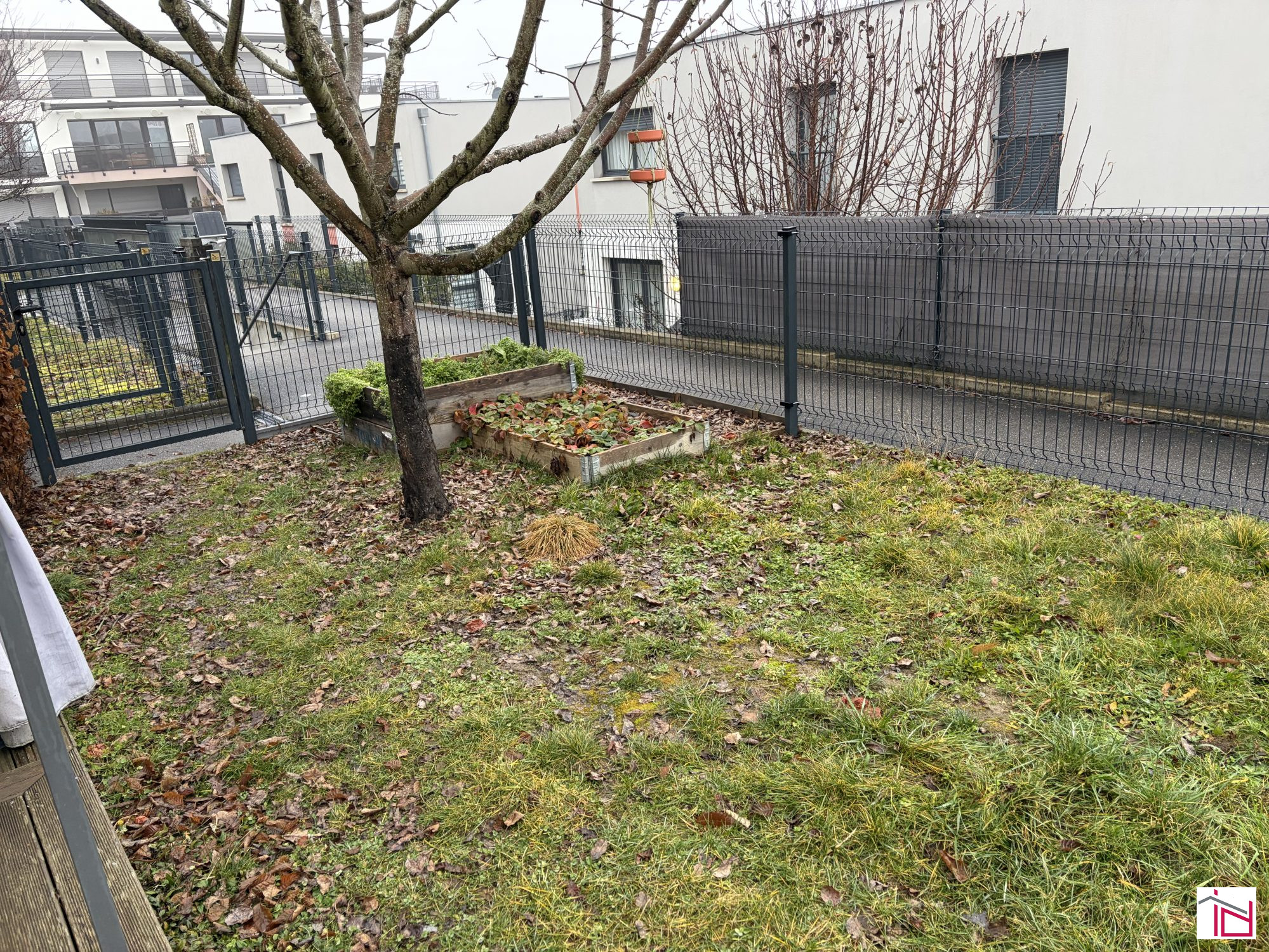 Une belle terrasse donnant sur un jardin arboré, clôturé, idéal pour profiter des beaux jours